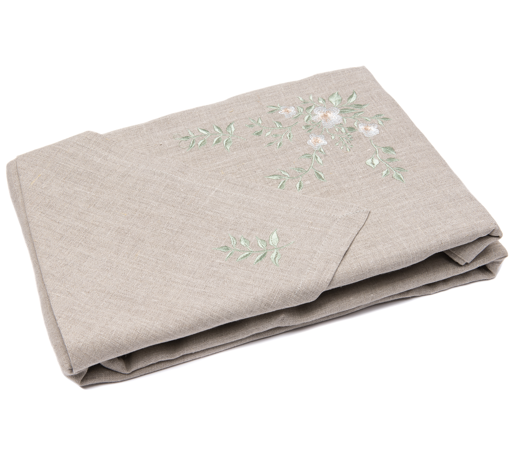 Embroidered flowers in all corners of the tablecloth